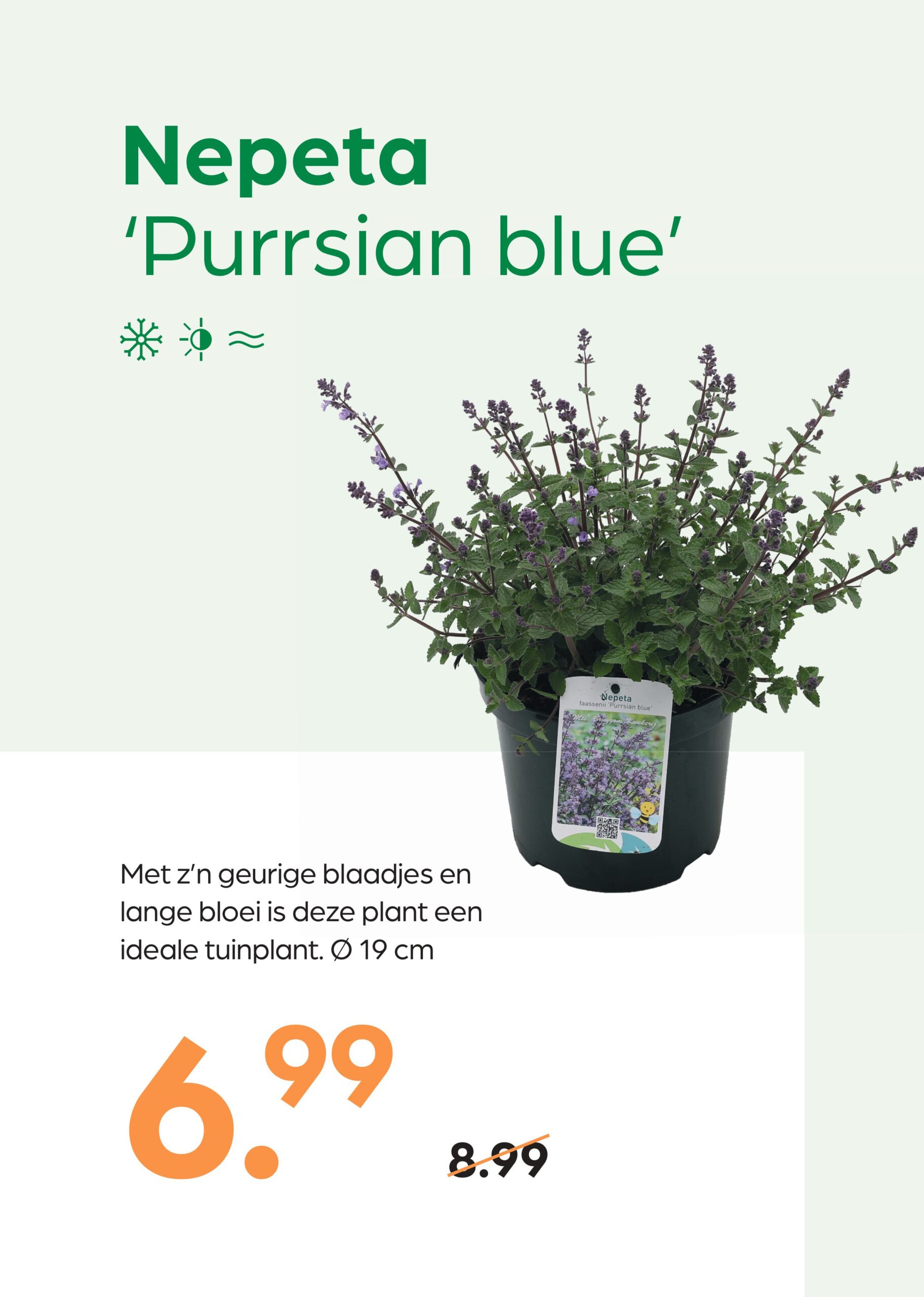 Met z’n geurige blaadjes en lange bloei is deze plant een ideale tuinplant. Ø 19 cm